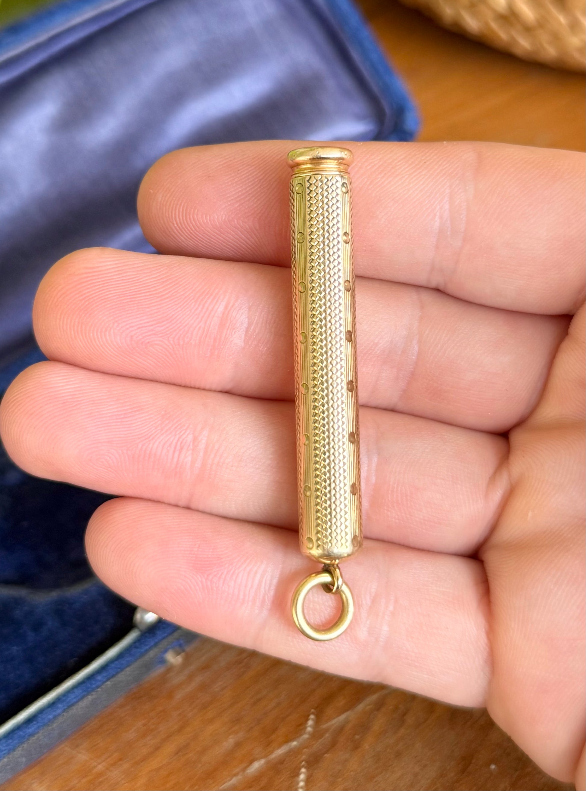 15ct Gold Retractable Dip Pen & Pencil Combination by Sampson Mordan & Co | Intricate Machine Engraving c.1900s