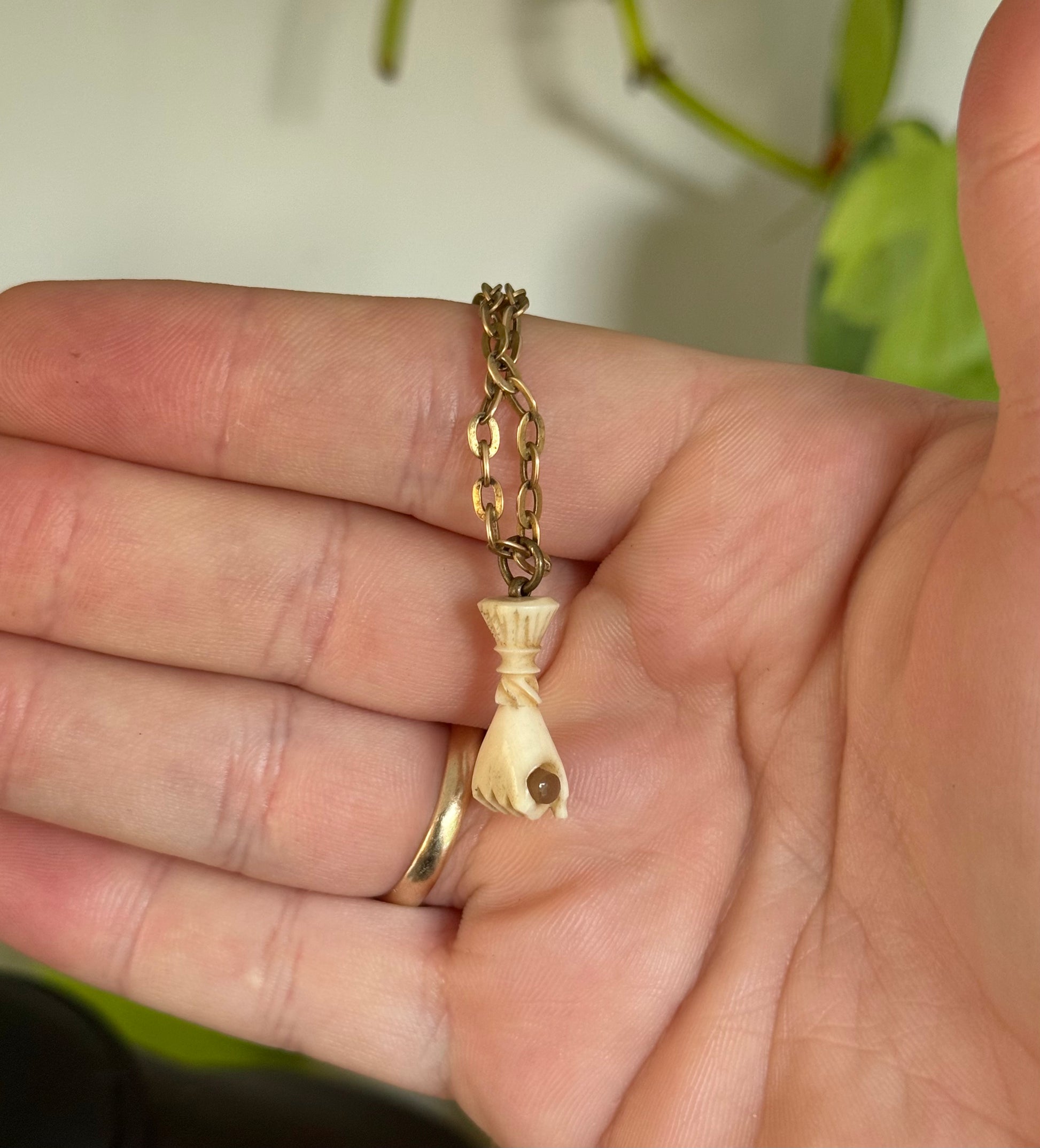 Antique Carved Bone Fist Stanhope Pendant – Notre Dame Image, c.1867