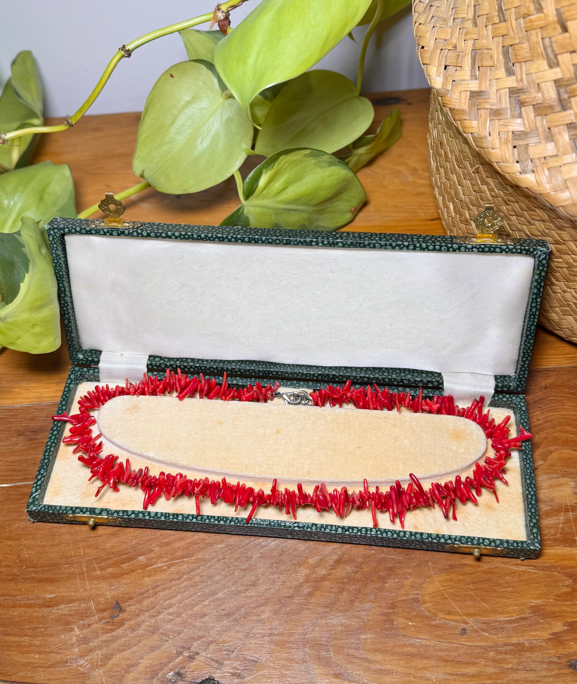 Condition: Very good vintage condition. The coral shows natural variation in size and tone, with minor wear typical of age. A vibrant, well-composed piece with beautiful presence.