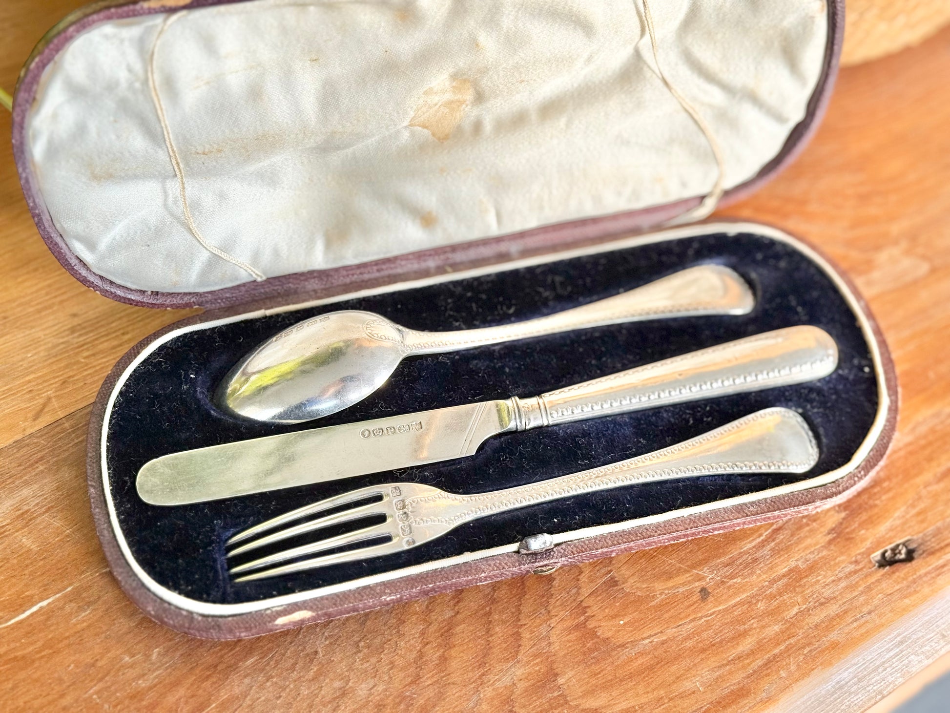 Why we chose it: There’s a quiet elegance to this little set — silver made for a child, yet crafted with the same care and detail as any grand table service. The hallmarks tell us it was made in Sheffield in 1858, but the design speaks for itself: refined, balanced, and made to last. It’s easy to imagine it once wrapped as a christening gift or laid out for a special occasion, cherished from the beginning and kept safe ever since. A small, beautiful piece of the past.