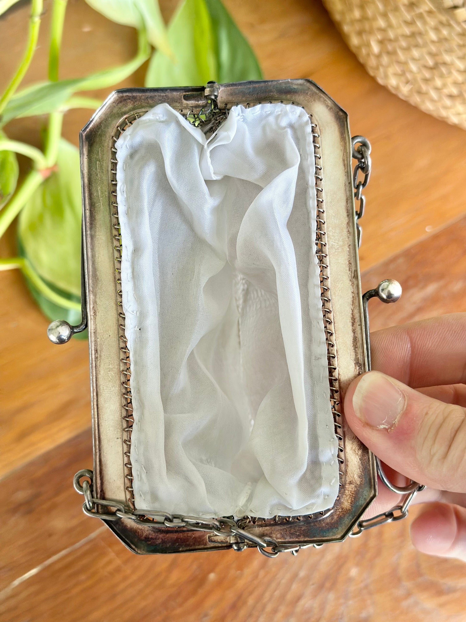 Condition: In good antique condition with some light wear consistent with age. A few mesh rings are missing, as is typical for pieces of this age, but the structure remains stable and visually cohesive. The interior lining has been inserted or replaced at some point in its history. Clasp and hinge are in working order.