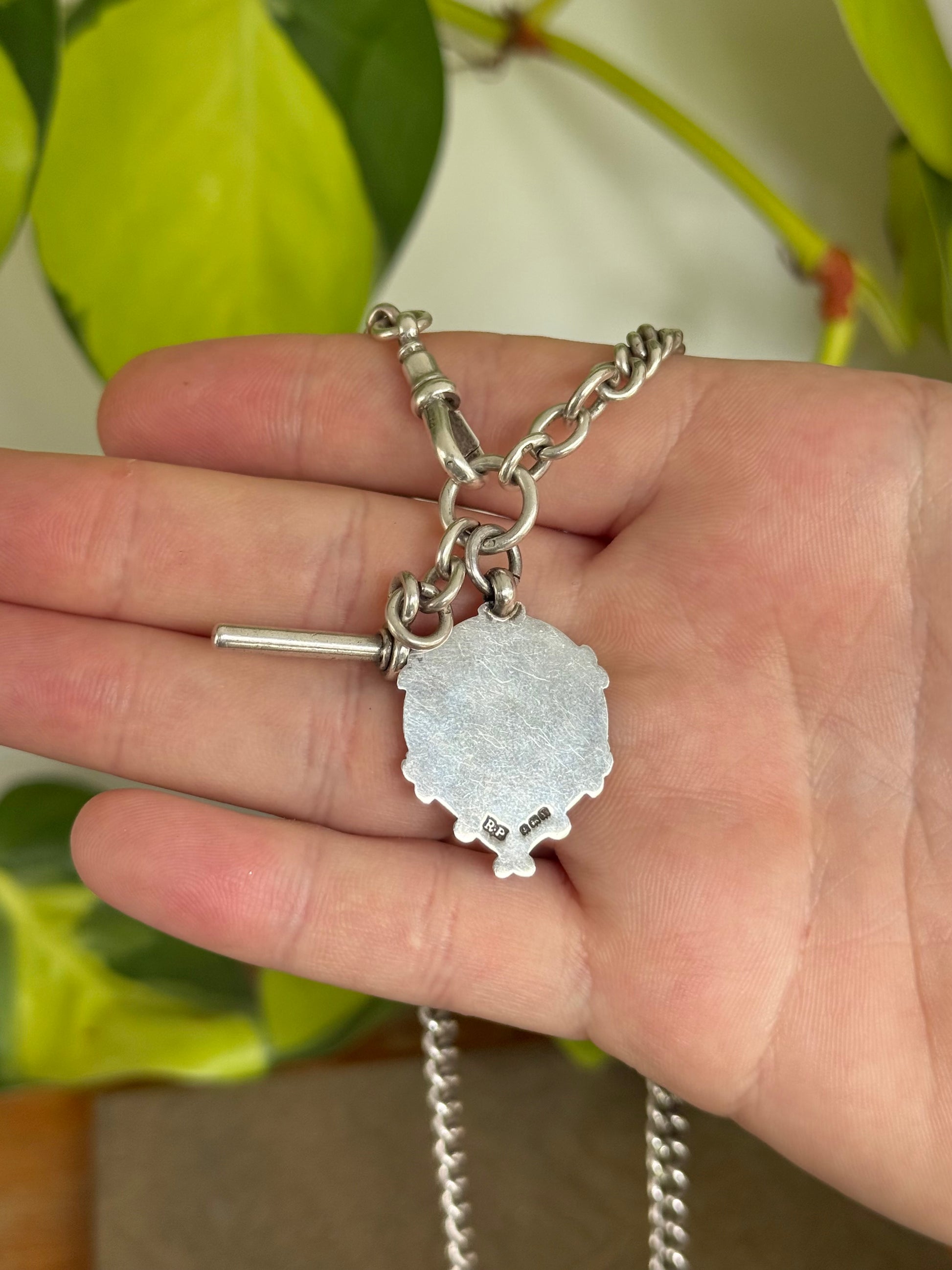 English Sterling Silver Fob Chain with Medal – Circa 1900s, Fully Hallmarked