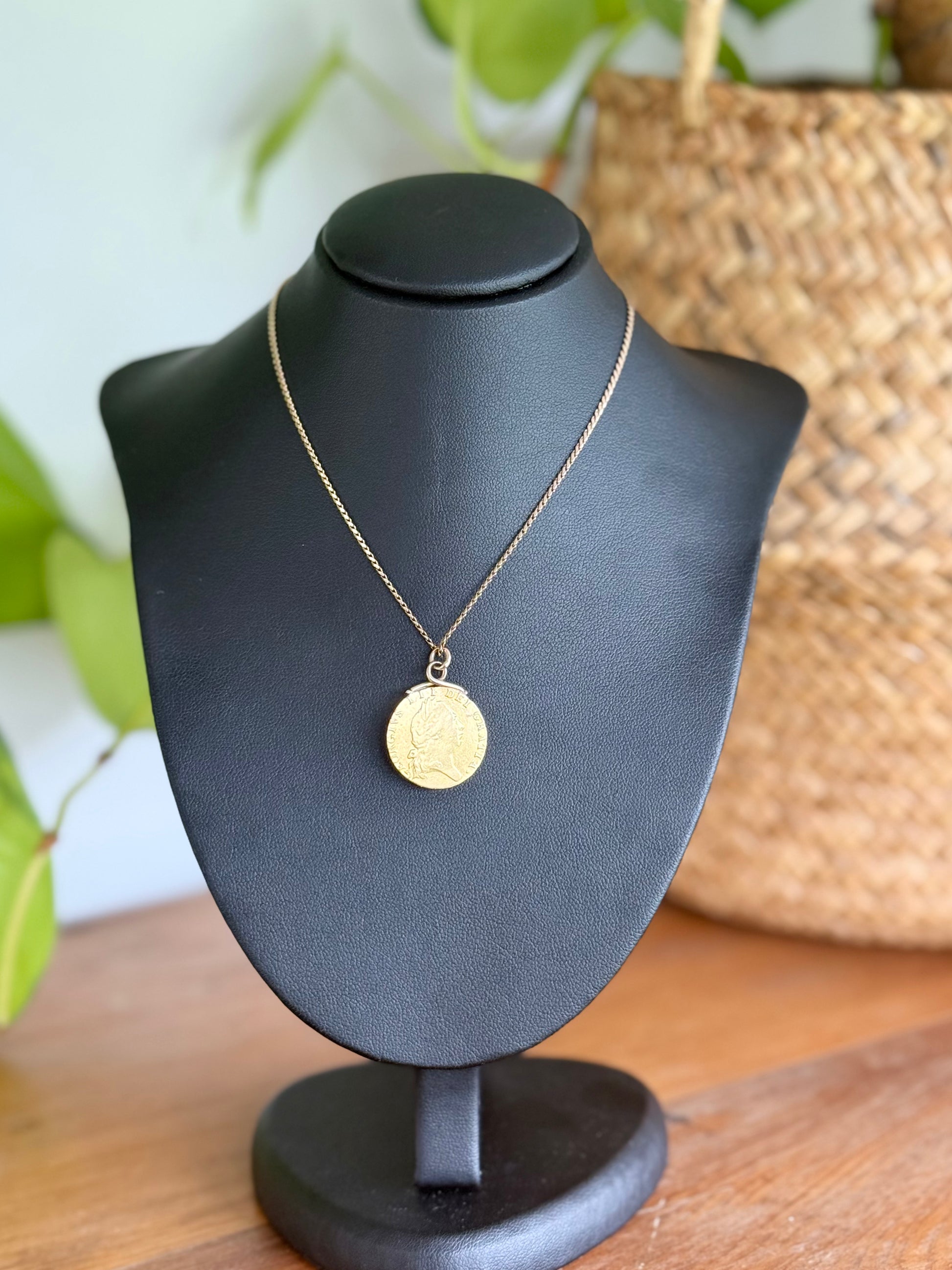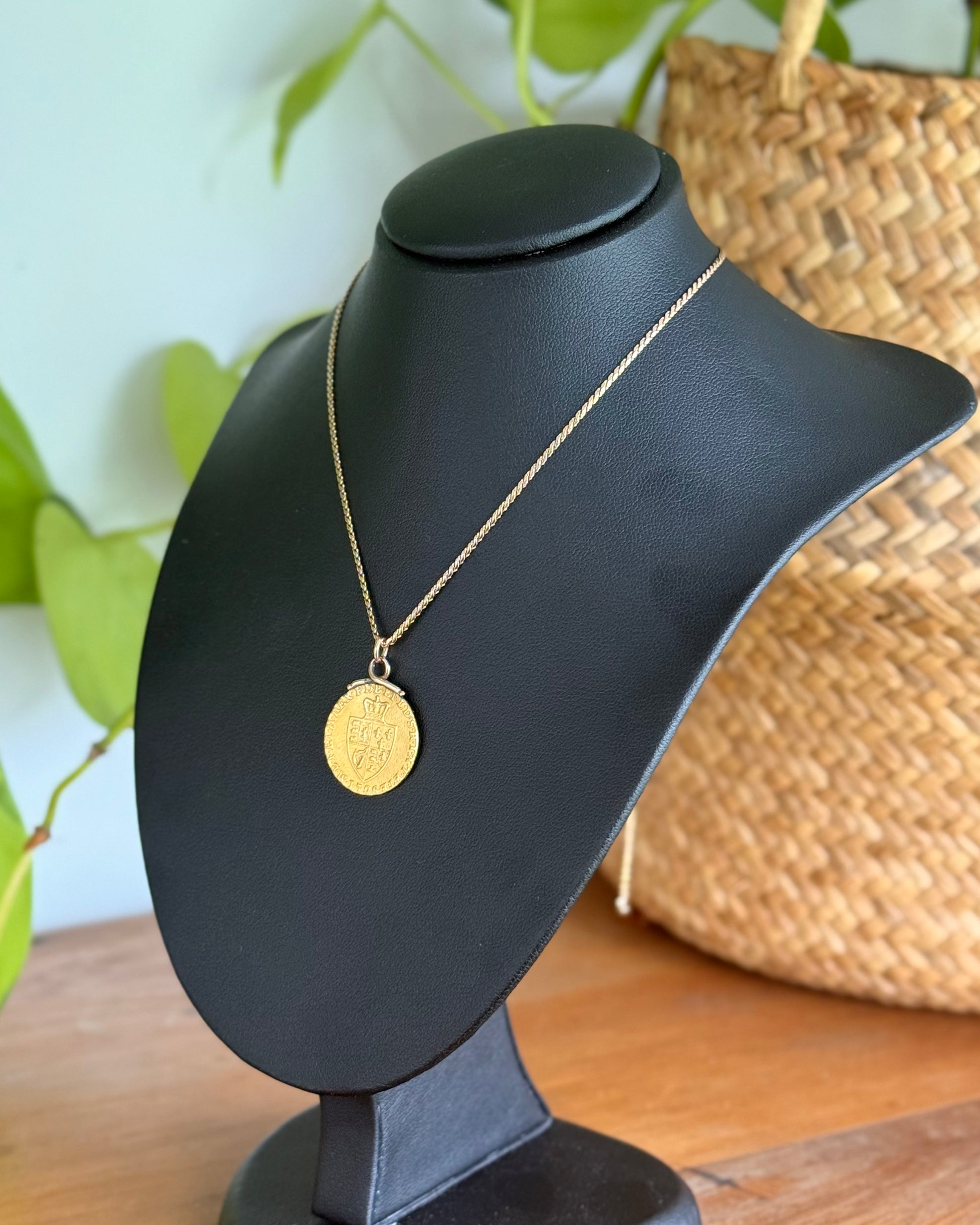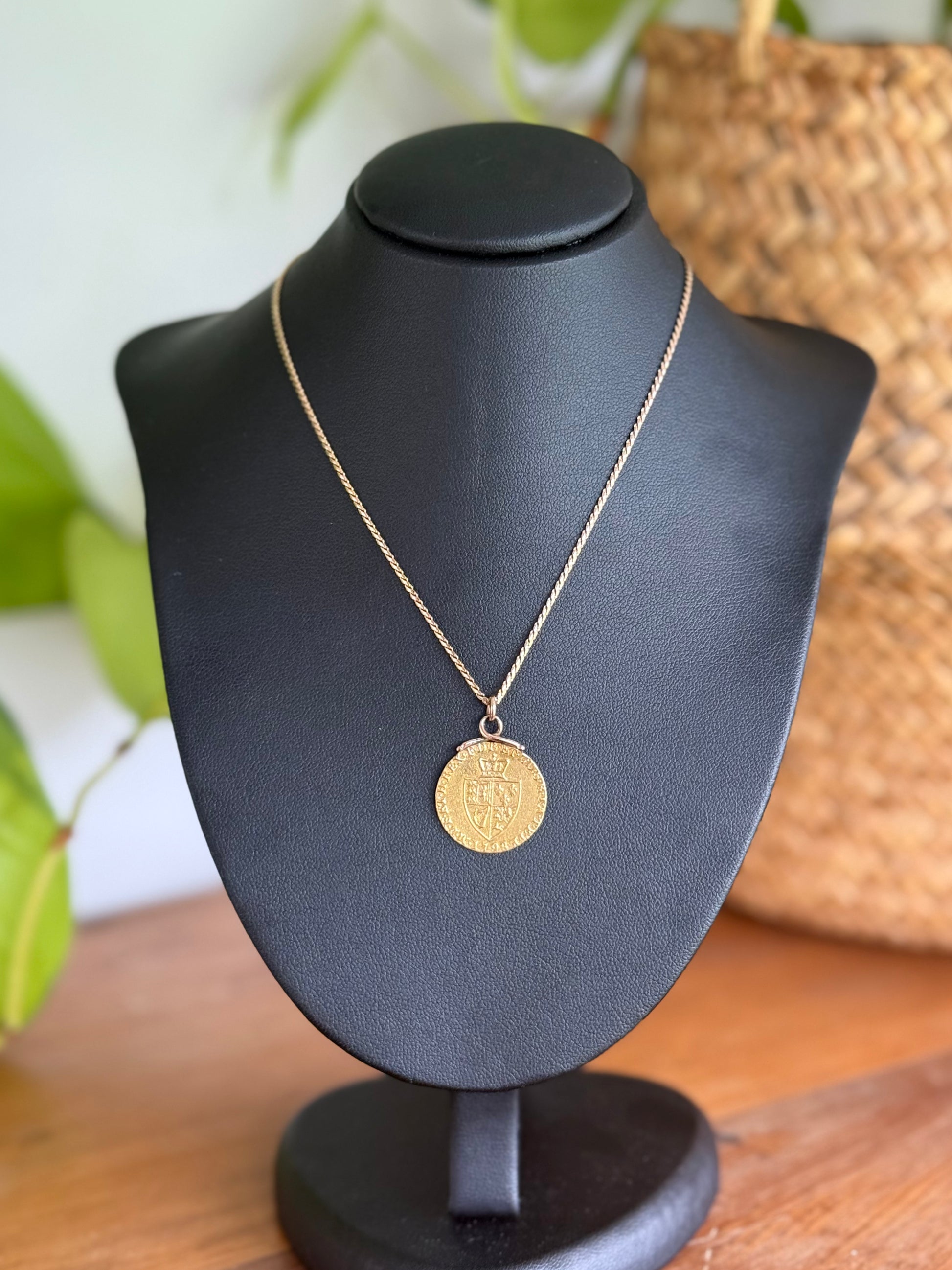Expertly minted in 22ct gold, this authentic coin is a testament to over two centuries of craftsmanship and imperial heritage. It’s been tastefully mounted and comes suspended from a generous 9ct gold chain, adding wearable elegance to its numismatic value.