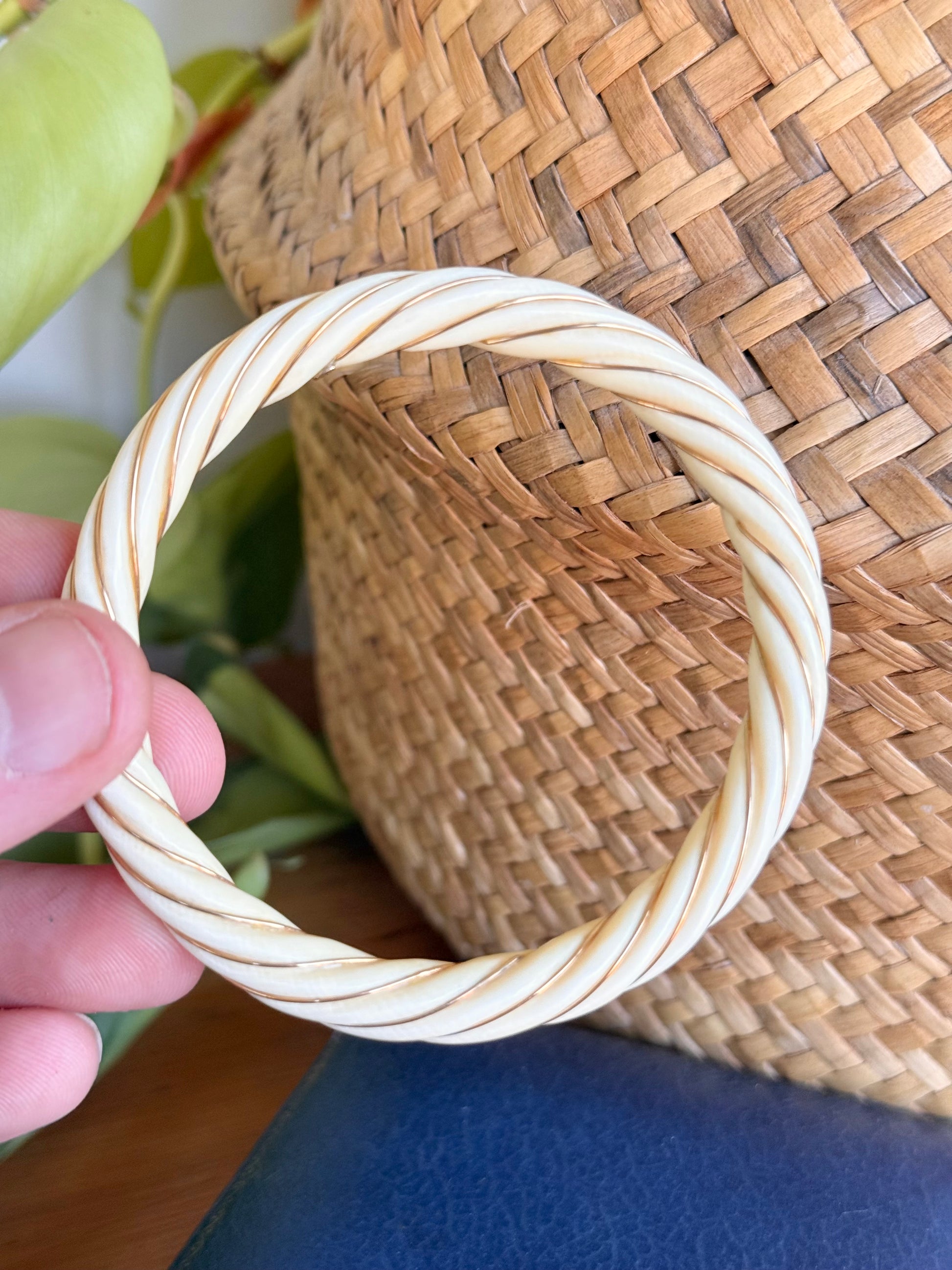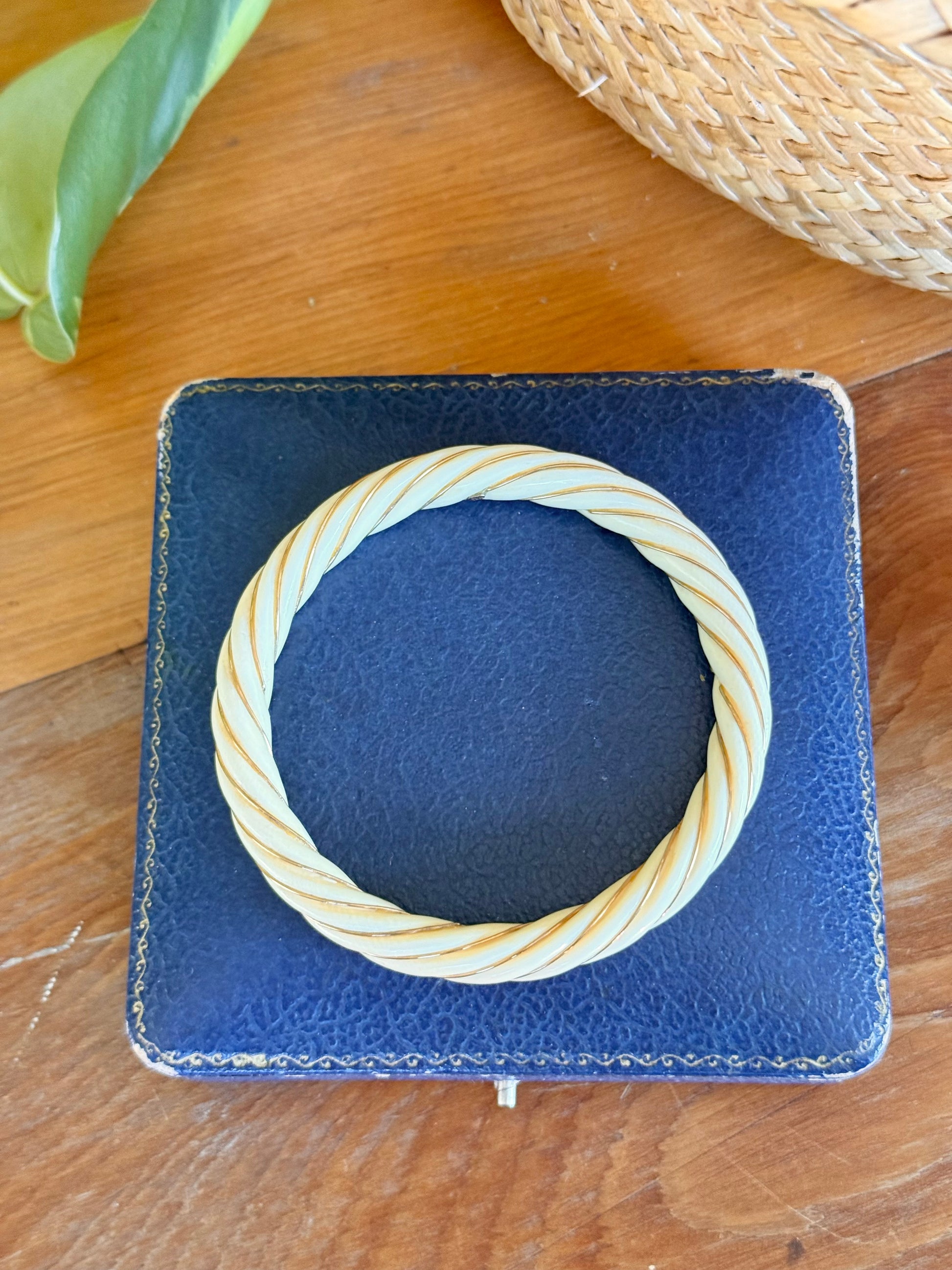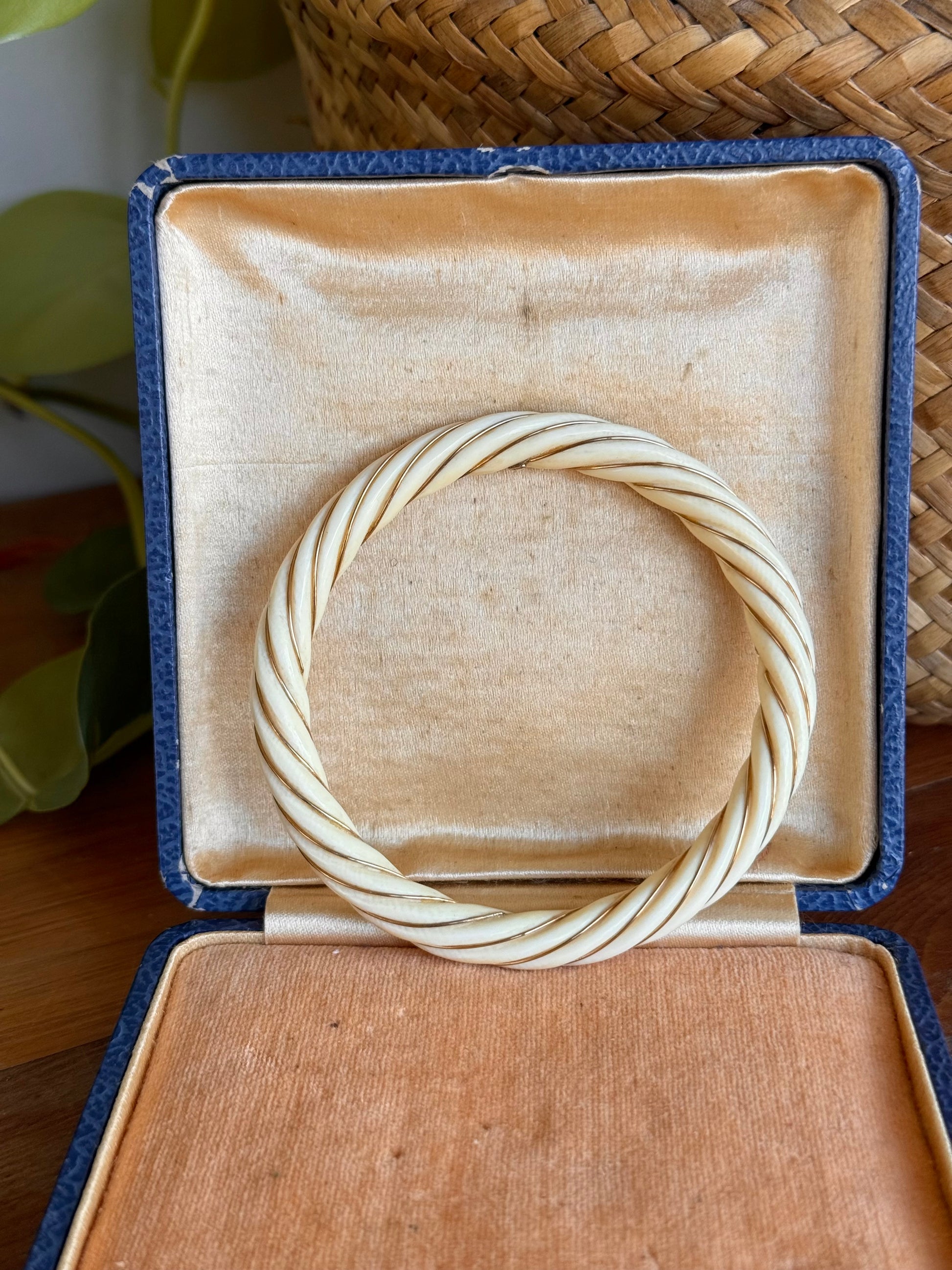 Ivory and 18ct Yellow Gold | Hand Carved Twist Bangle circa 1900’s