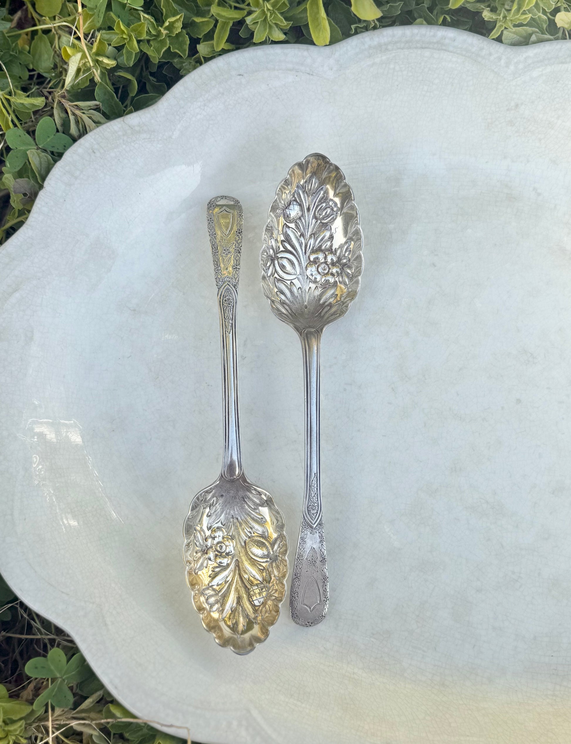 Pair of Ornate Victorian Sterling Silver Berry Spoons | London 1842 by William Eaton