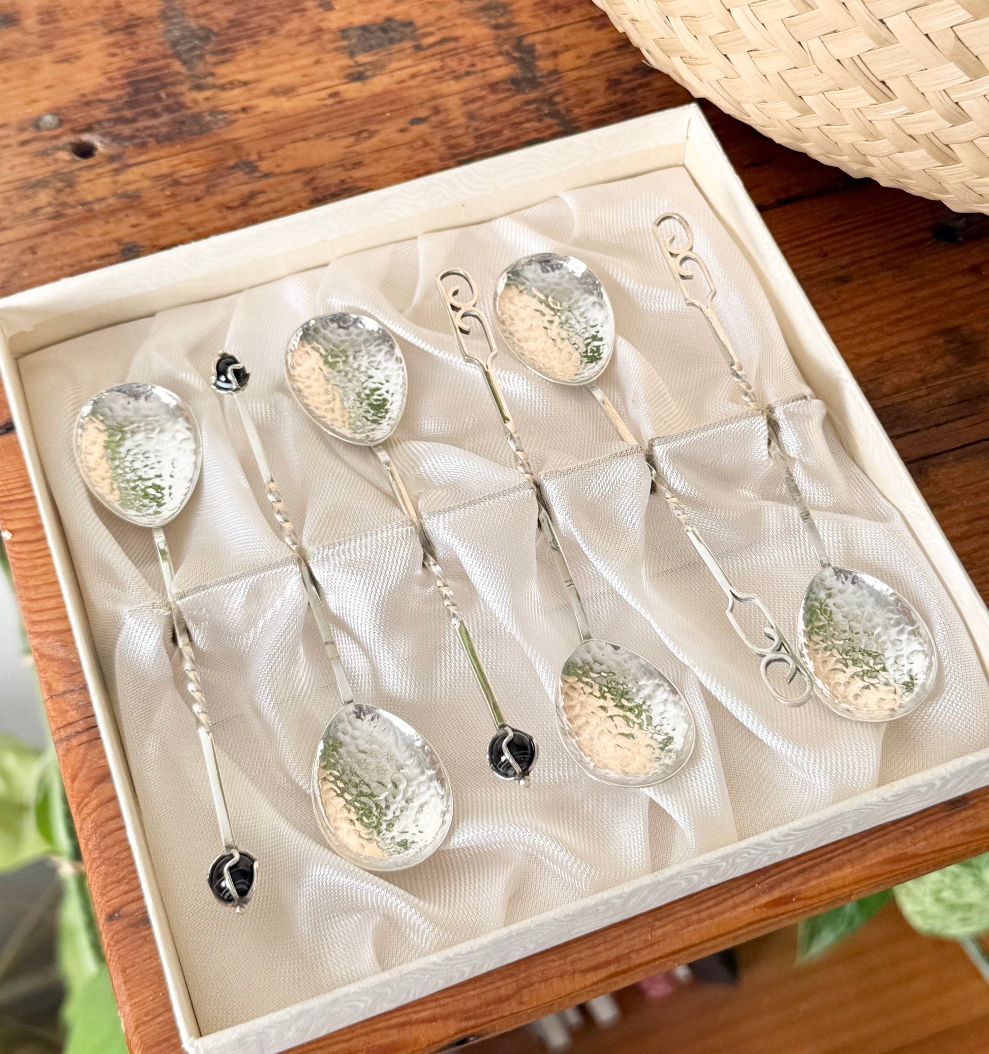 Why we chose it: We’re always drawn to pieces that showcase both craftsmanship and regional heritage, and this charming set from Sargisons of Tasmania ticks every box. The combination of elegant sterling silver with colourful glass finials makes for a striking display, while the classic patterned handles offer timeless appeal. Whether you’re a collector of Australian silver or simply appreciate finely made vintage wares, this set is a rare and delightful find that speaks to quality and individuality.