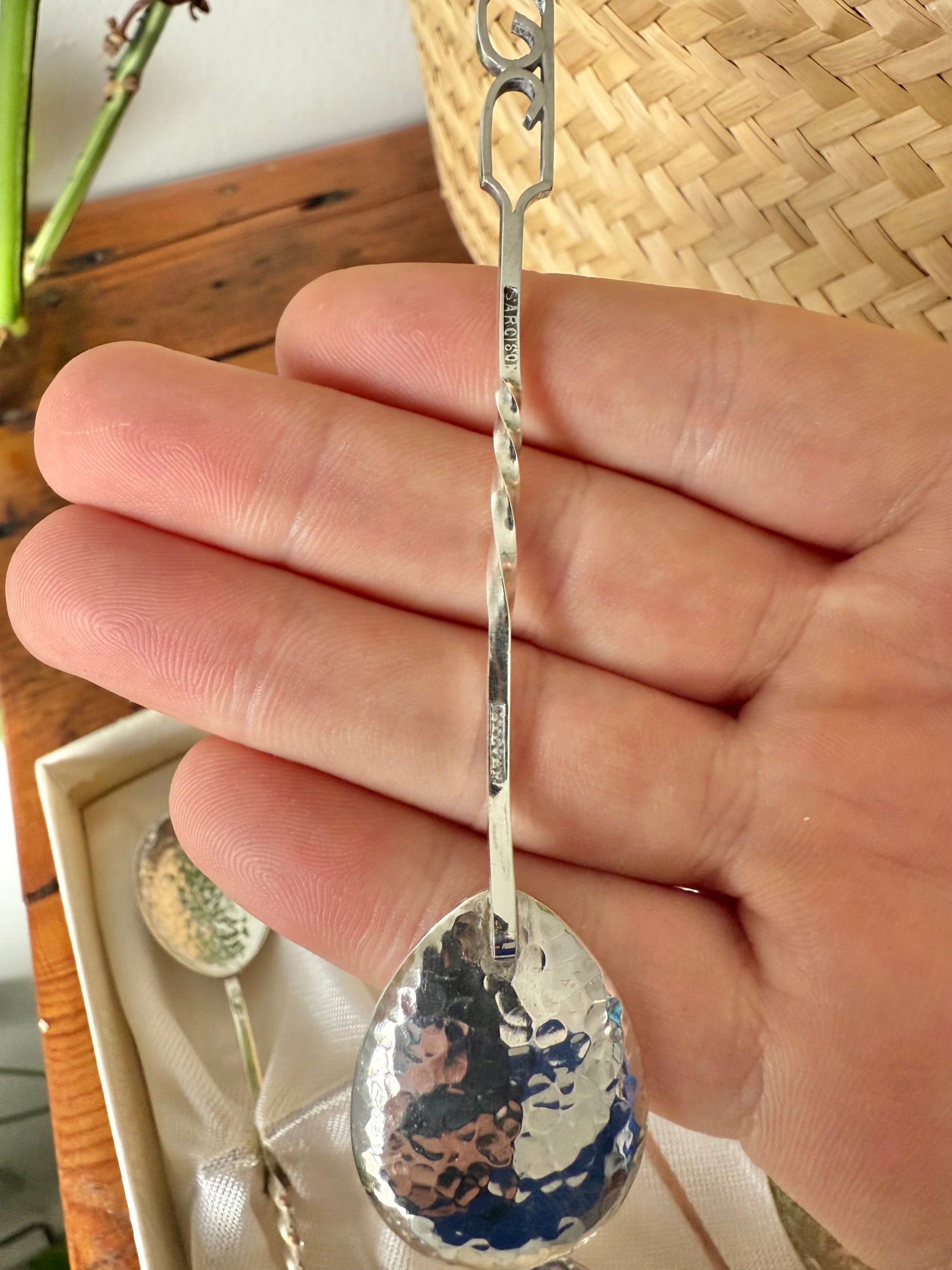 Sterling Silver Sargisons Teaspoon Set | 3 with Glass Finials, 3 with Patterned Handles – Tasmania